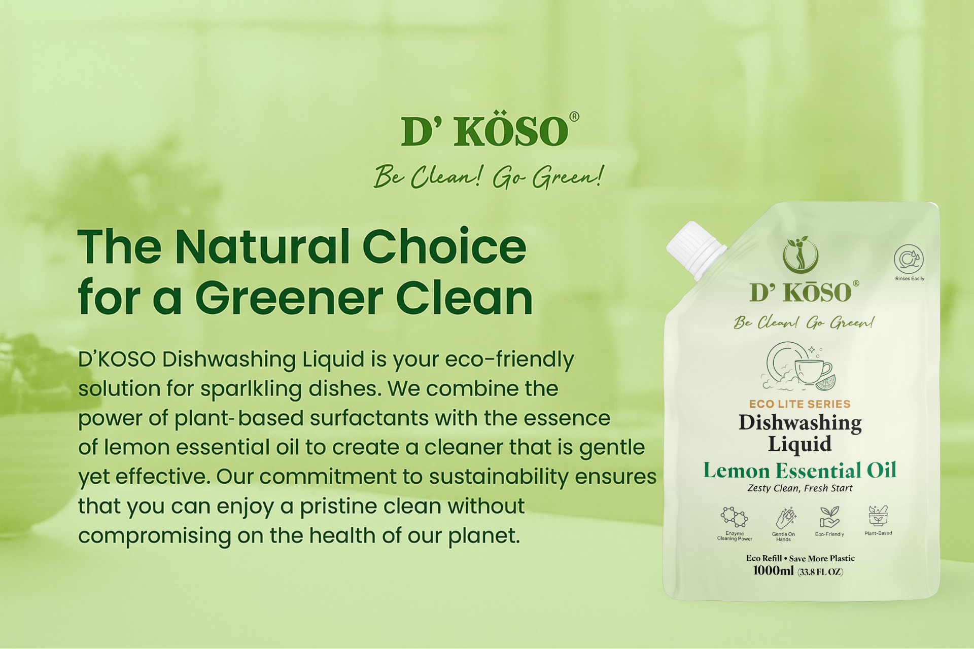 1000ml Dishwashing Liquid Refill Pack - Lemon EO
